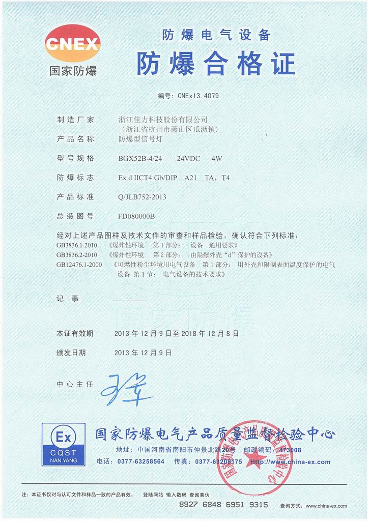 防爆證書>>詳細(xì)信息