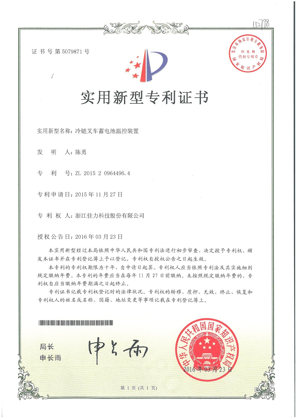 技術(shù)發(fā)明專利證書
